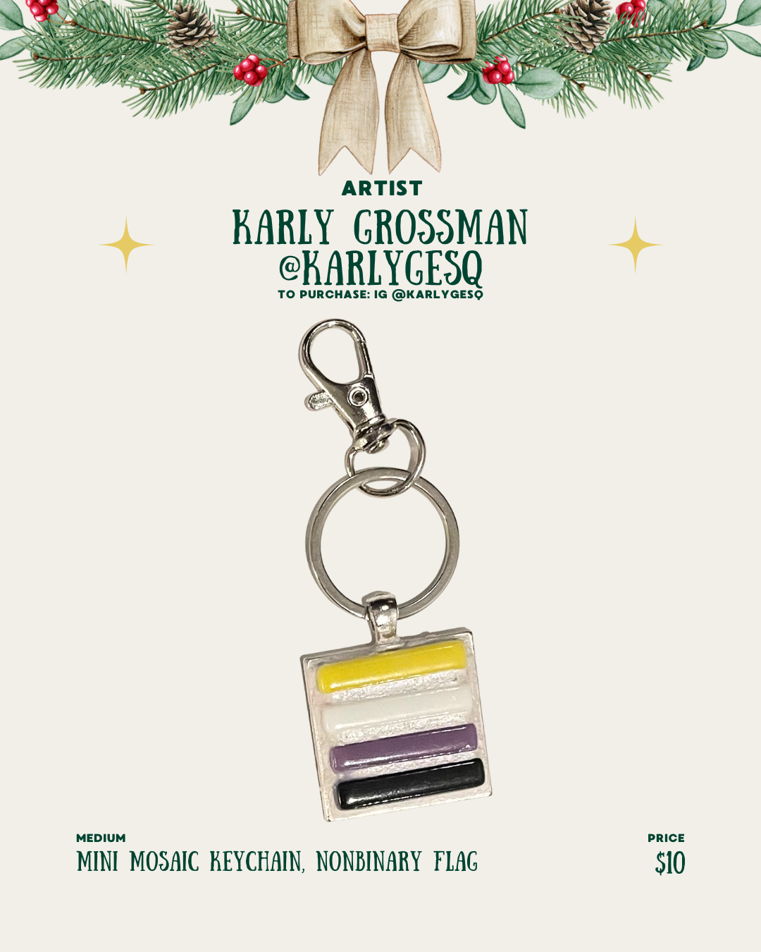 I’m a (gender)queer, multiply disabled artist/activist living in Philadelphia. I make small mosaics household items and mini-mosaic jewelry. Thank you for organizing this; I would love to be part of it!