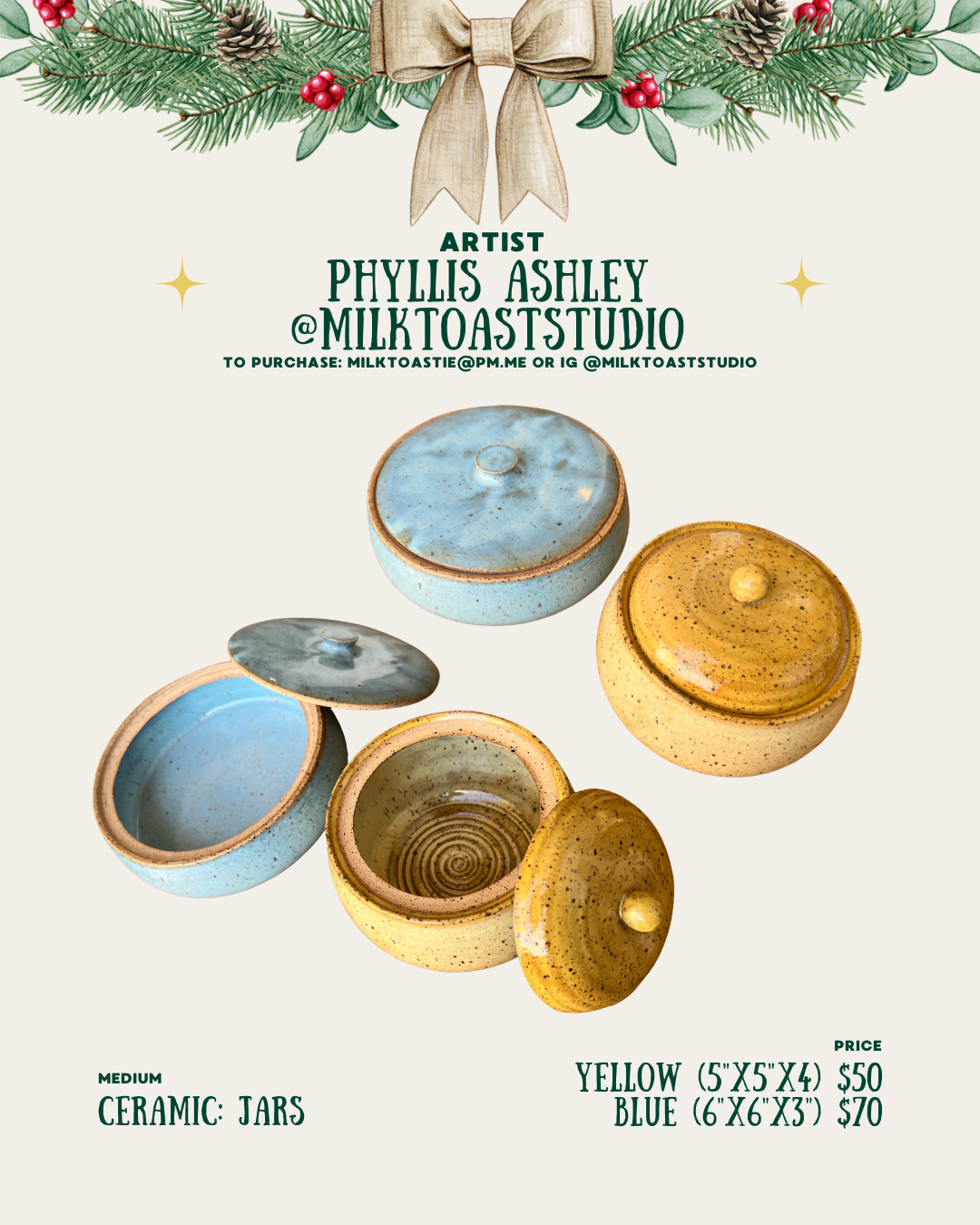 Disabled in south Florida. Ecologist by day, potter when able. Phyllis started Milktoast Studio in 2022, but is on hiatus after developing Long COVID. She is currently working on launching a mask bloc – funds from this sale will go to support!